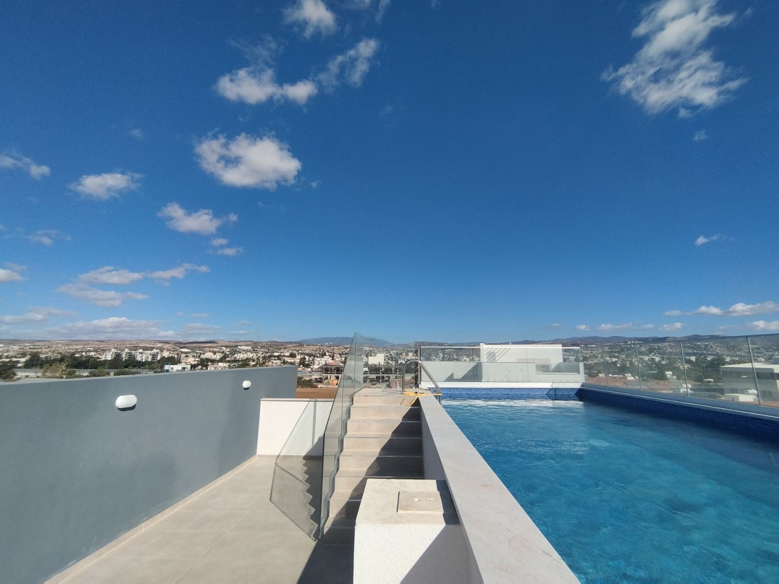 Η διαρρύθμιση περιλαμβάνει κουζίνα και σαλόνι ενιαίας διαρρύθμισης, δύο υπνοδωμάτια, εκ των οποίων το ένα είναι με ιδιωτικό μπάνιο, καθώς και ένα κοινό μπάνιο. Στο εσωτερικό, θα βρείτε απλό προς μοντέρνο φινιρίσματα, δάπεδα από laminate στα υπνοδωμάτια και είδη υγιεινής ευρωπαϊκών προδιαγραφών. Το ακίνητο διαθέτει επίσης εγκατεστημένο ηλιακό σύστημα για ζεστό και κρύο νερό, καθώς και πρόνοιες για κλιματισμό και φωτοβολταϊκά.Κοινόχρηστη πισίνα στην οροφή. Εσωτερική επιφάνεια 89m2. Καλυμμένη βεράντα 14m2.Προσθέστε ΦΠΑ αναλόγως.