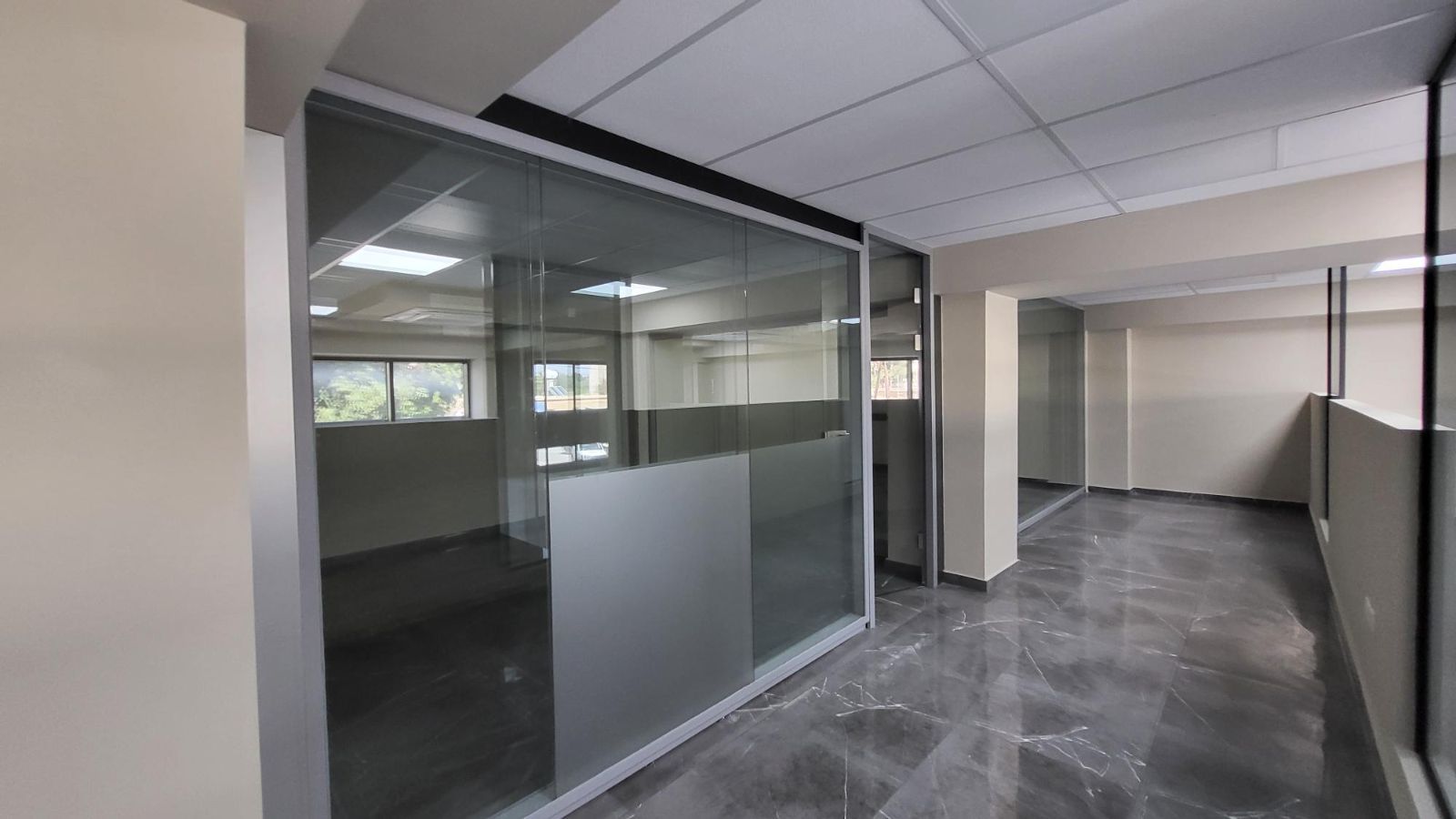 Το μεσωπάτωμα περιλαμβάνει και 2 χώρους κλειστούς με γυαλλί και πόρτα π.χ. χώρος διευθυντή και χώρος συνεδριάσεων.